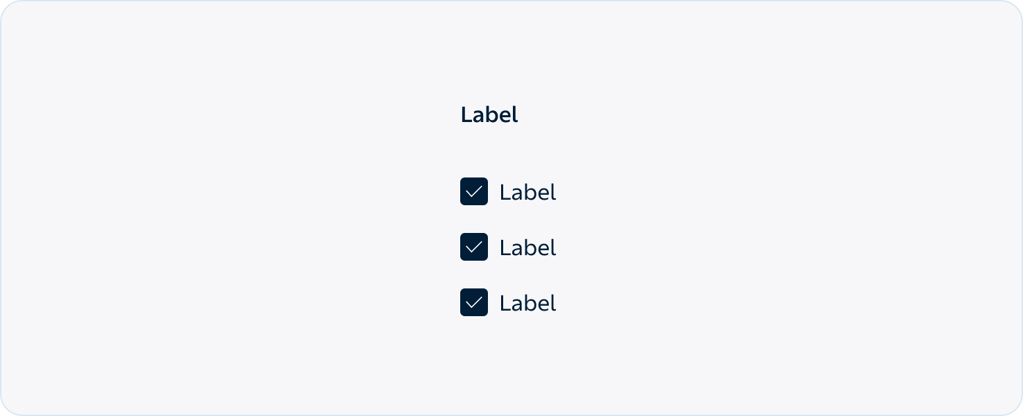 - Label: Puede incluirse o no, dependiendo del contexto. Si el propósito del checkbox es evidente por sí mismo, se puede omitir el label.