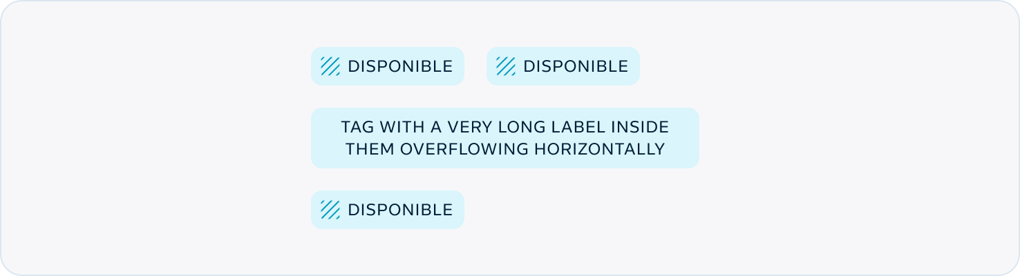 Si uno de los tag es especialmente largo y ocupa todo el ancho disponible, el componente activa su comportamiento de overflow, evitando que el diseño se rompa y manteniendo la legibilidad. De esta forma, aseguramos una experiencia consistente