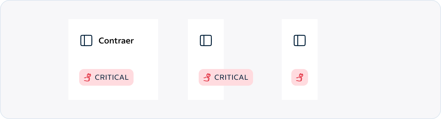 El tag está diseñado para comunicar siempre mediante icono + label, siendo el texto obligatorio como parte de su significado y accesibilidad. Sin embargo, existen escenarios muy concretos en los que el espacio disponible no permite mostrar el contenido completo sin provocar overflow o romper el layout. Solo en estos casos se habilita el comportamiento colapsado, en el que el tag reduce su contenido y muestra únicamente el icono.